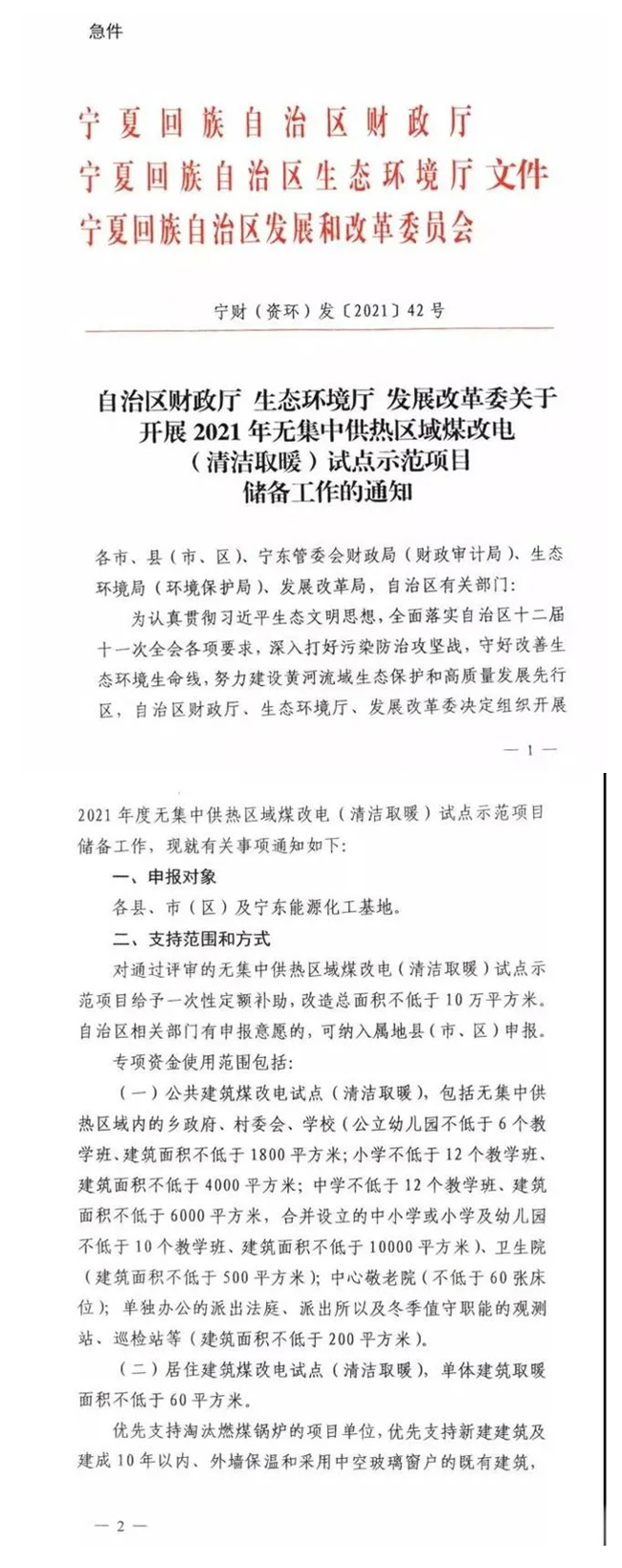 急件!含“煤改电(清洁取暖)”,宁夏下发2021年无集中供热区域储备工作通知