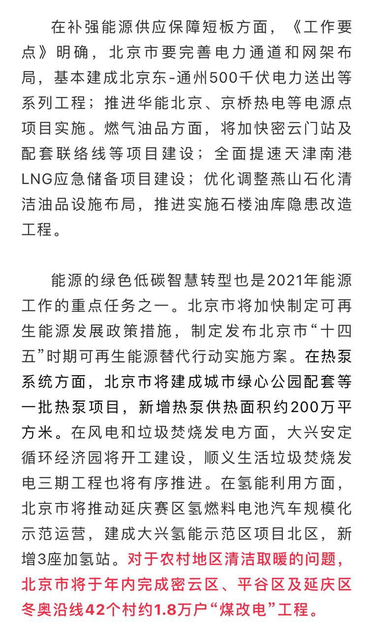 北京:2021年完成42个村约1.8万户“煤改电”工程