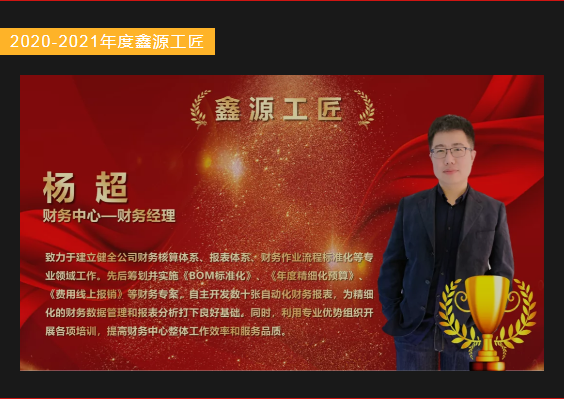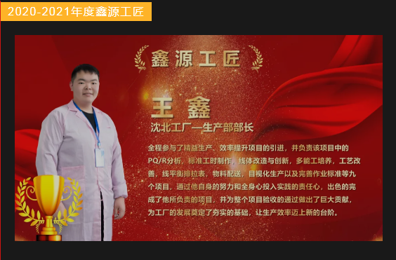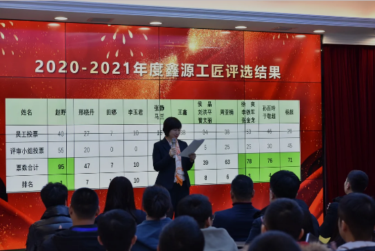 经过员工和评审小组的投票,根据参赛小组获得票数,评选出了5组2020-2021年度鑫源工匠。集团对鑫源工匠们做出了隆重的表彰,获奖者在现场分享了心得体会和工作经验。