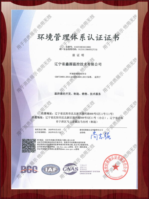 ↑鑫源温控获环境管理体系认证↑
