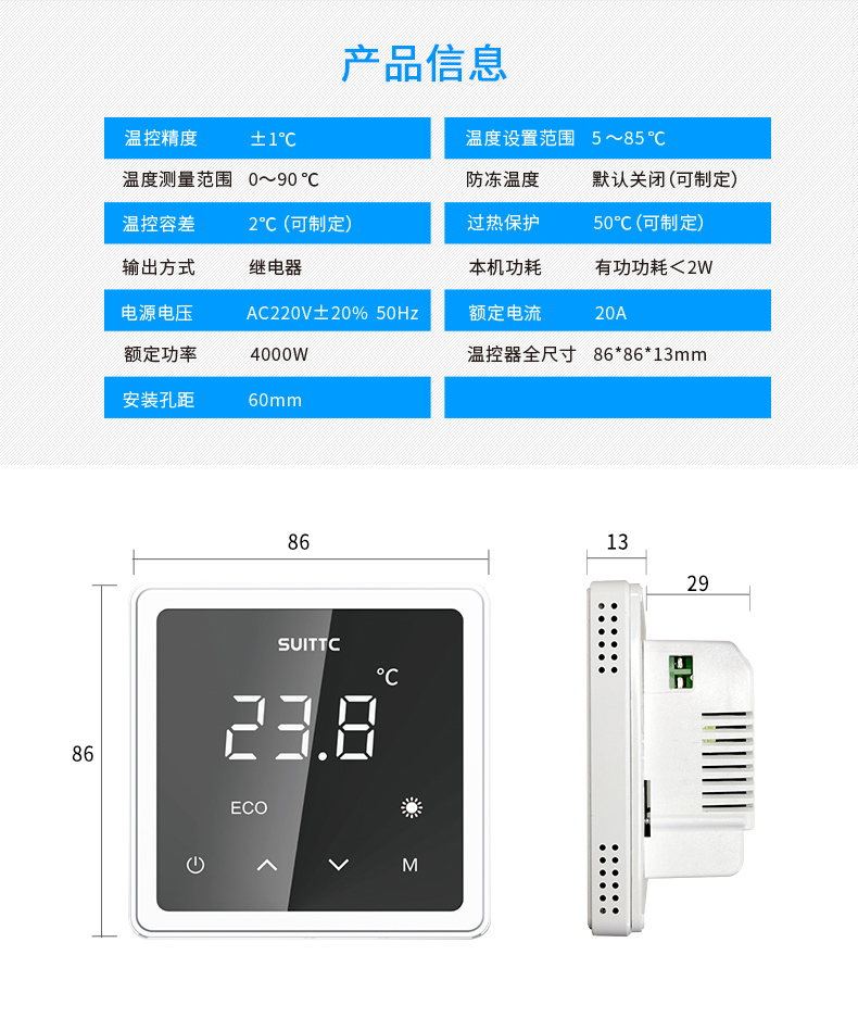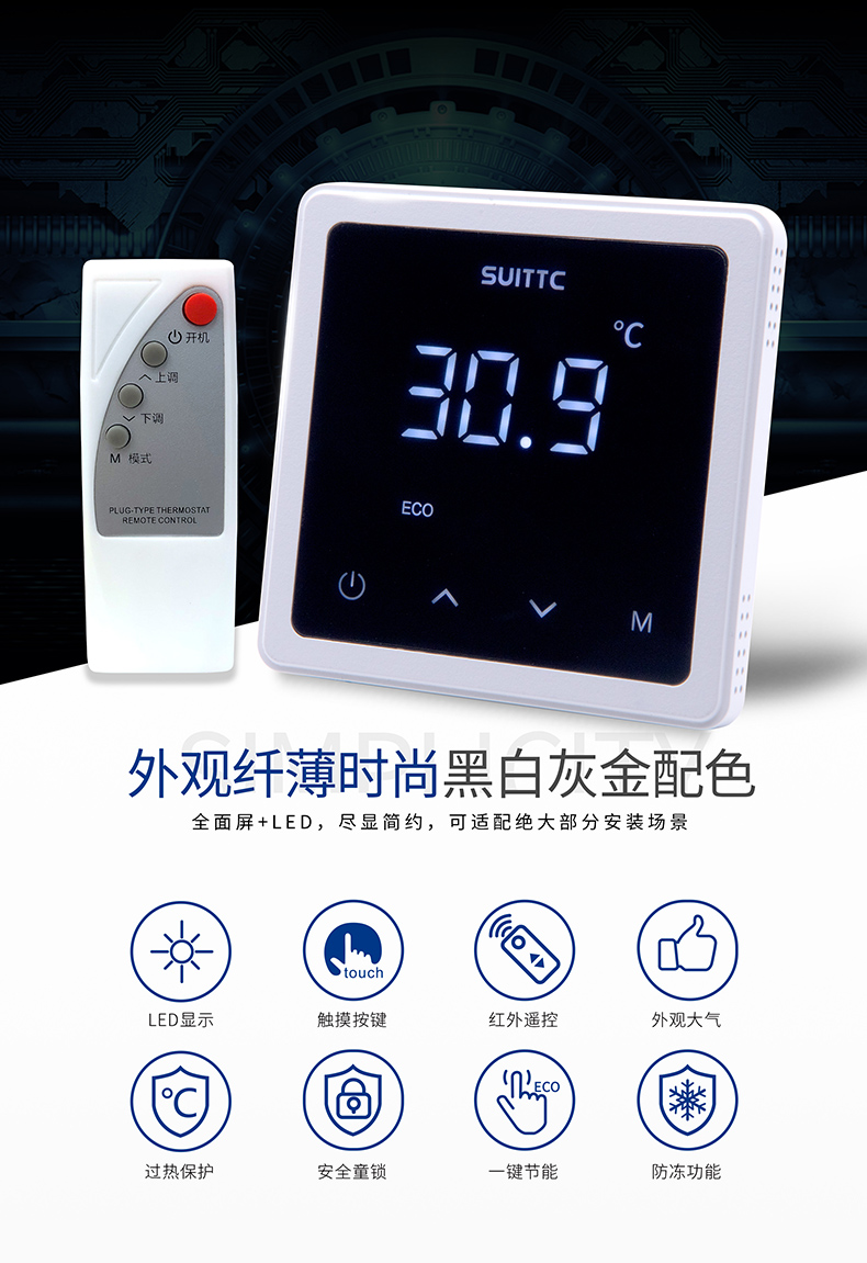 鑫动6701温控器不仅外观炫酷、功能操作便捷更是突破传统温控器界限,将智慧与轻奢融入日常生活。数码管显示、触摸按键、红外遥控、一键节能,生活的温度,简约而不简单。