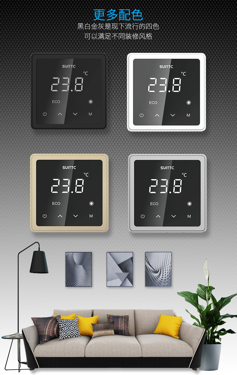 在鑫源温控之前,谁也没想到一个普普通通的温控器,可以成为「炫酷」的代名词。鑫动 6701温控器外观纤薄时尚,并辅以黑白灰金全系配色,尽显炫酷风采。