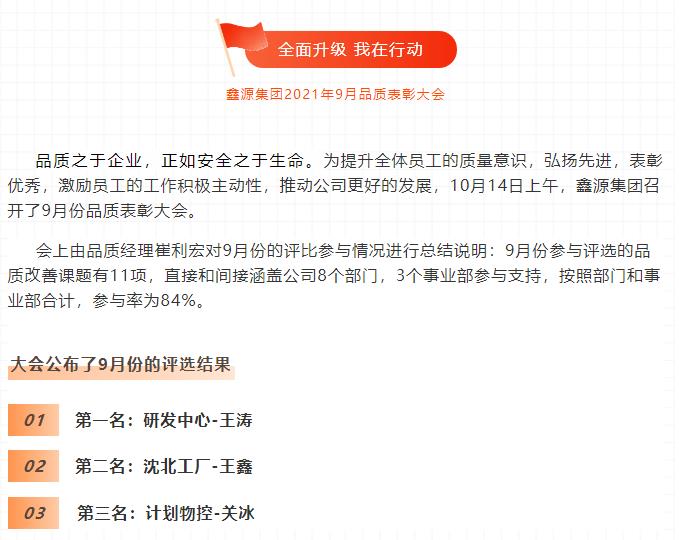 全面升级 我在行动|鑫源集团2021年9月品质表彰大会圆满成功