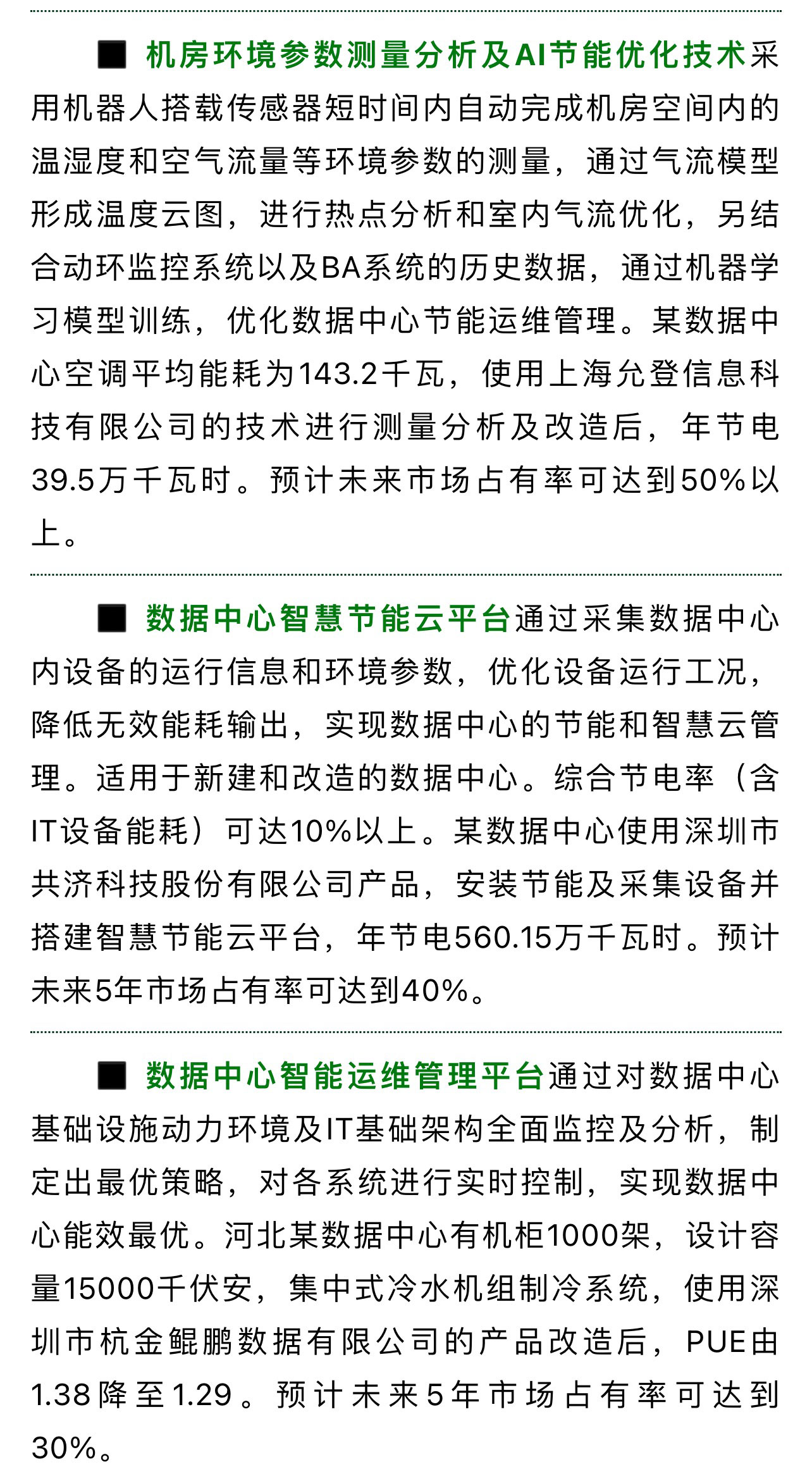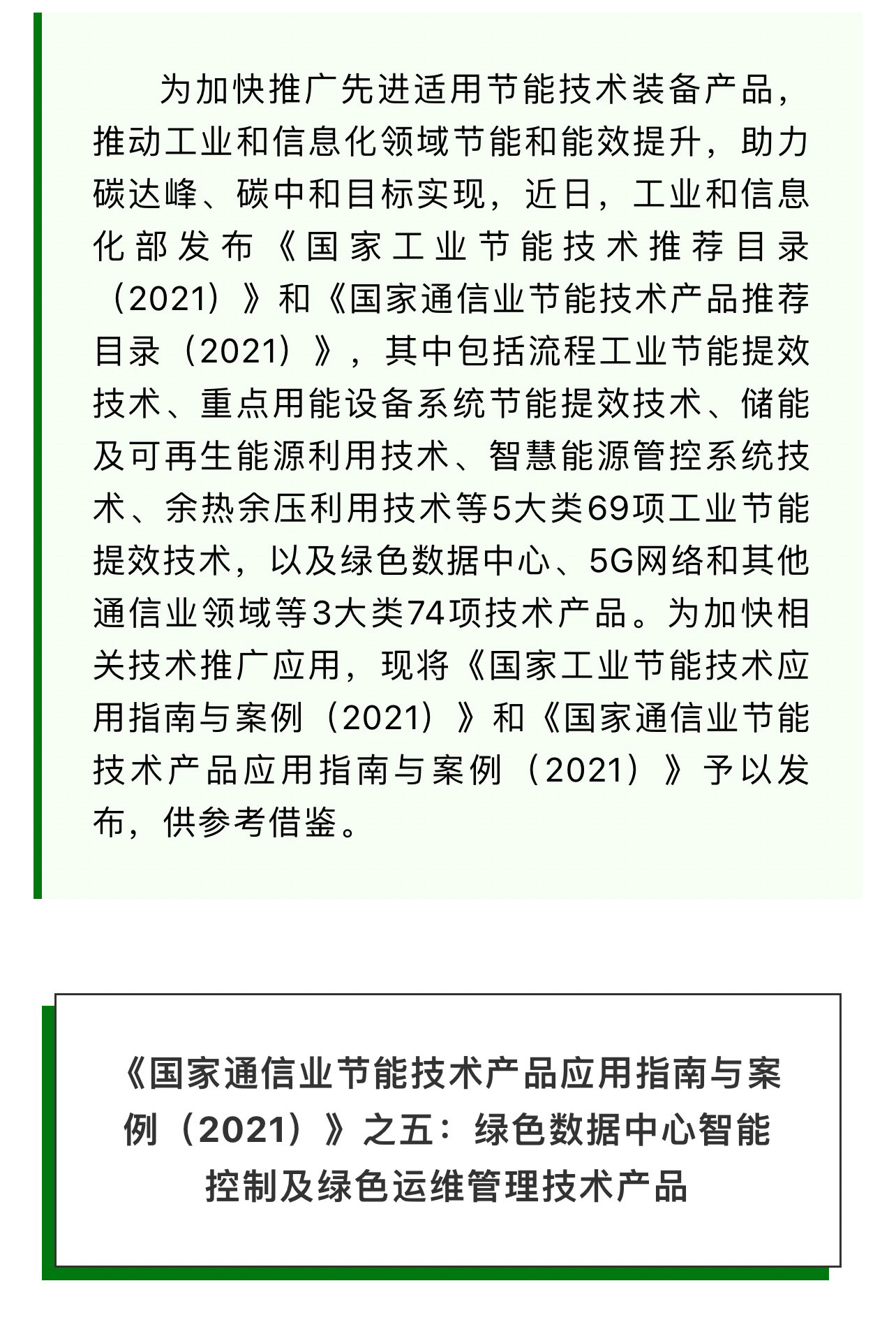 《国家通信业节能技术产品应用指南与案例(2021)》之五:绿色数据中心智能控制及绿色运维管理技术产品